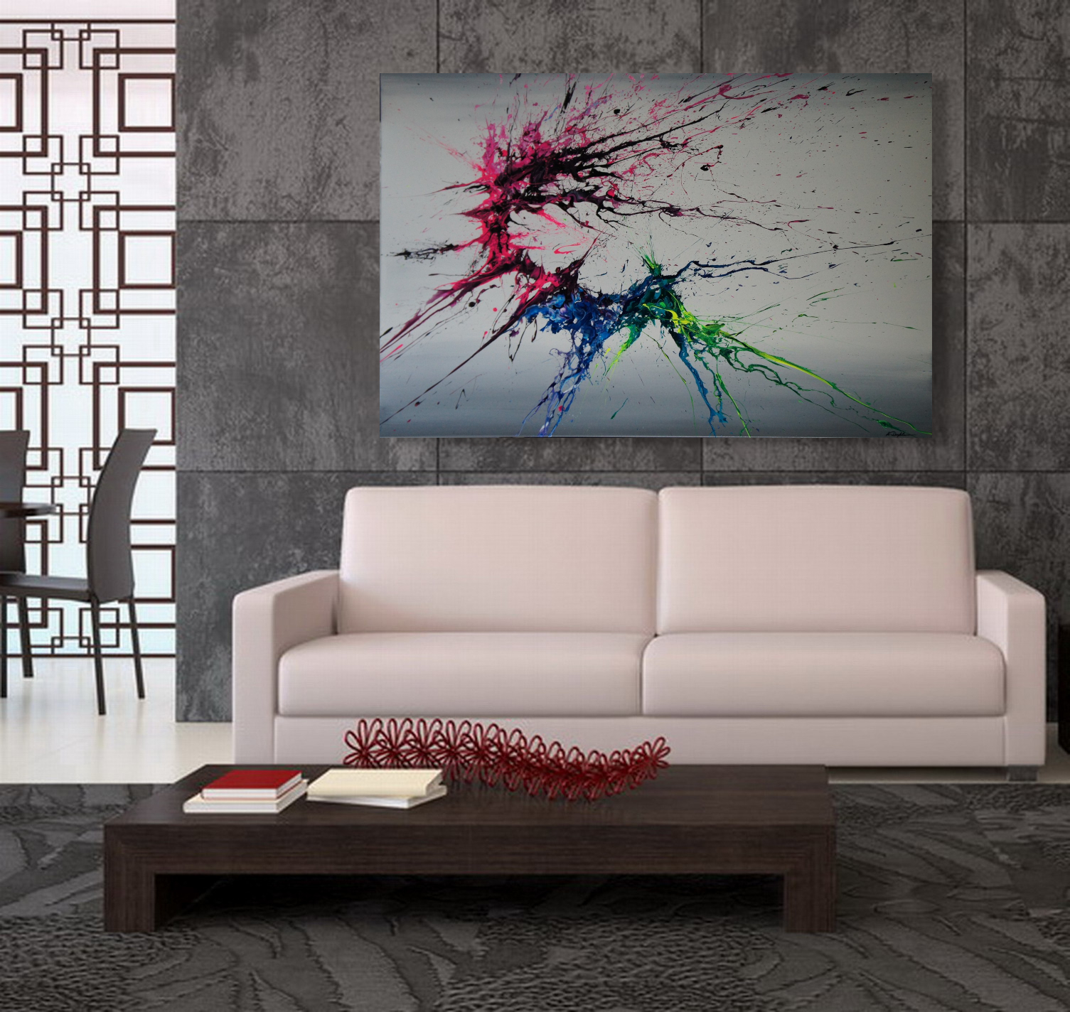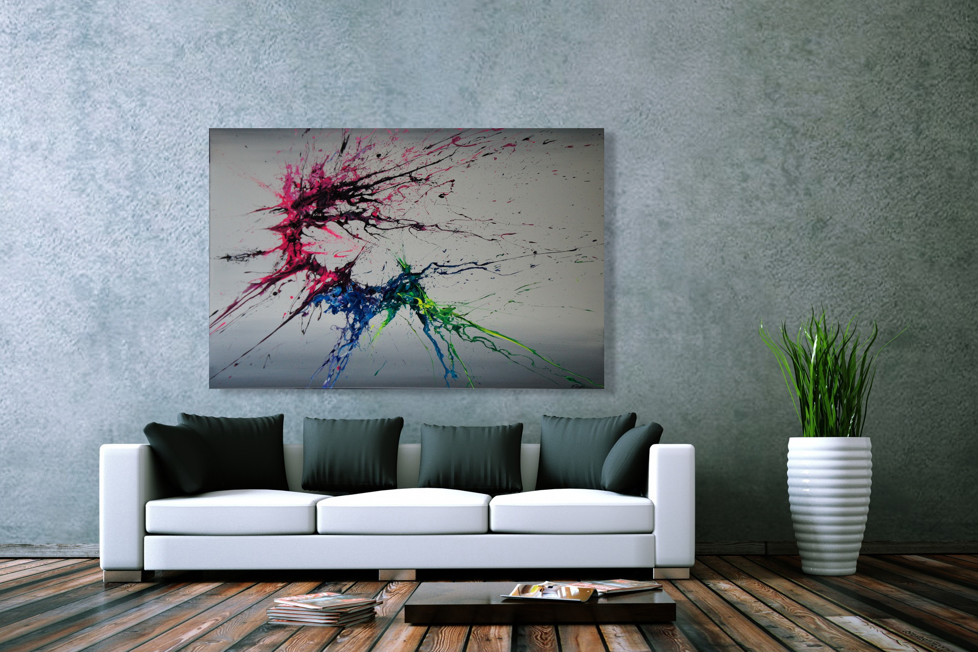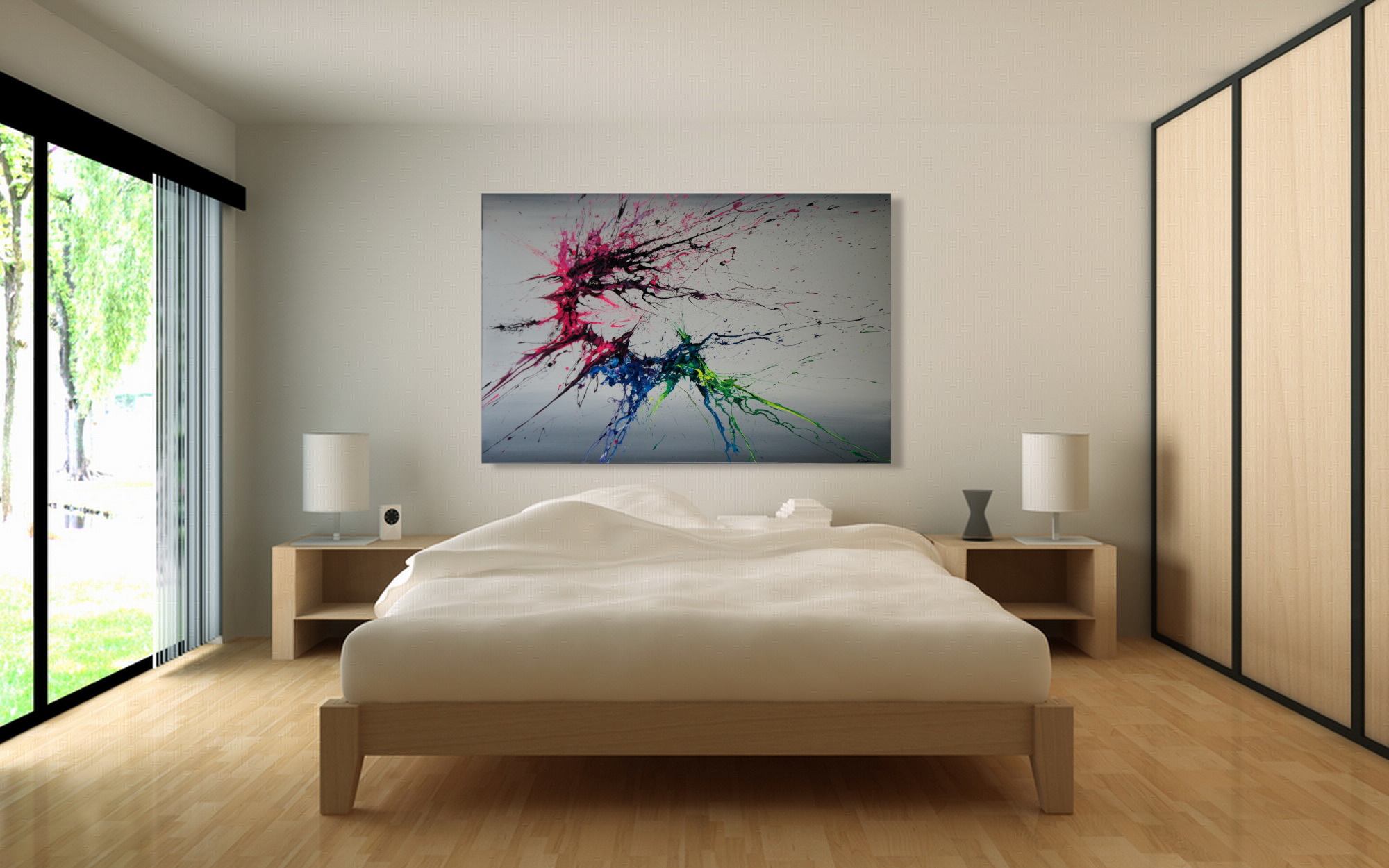 Please note: In-context images are for display purposes and do not necessarily show the artwork to scale. Refer to the dimensions section for the actual size of the painting. If you would like to see how this painting would look at your wall, just send me a photo of the wall/room and I can “photoshop” it onto the wall (approximately to scale of course), at no cost and without any obligation.