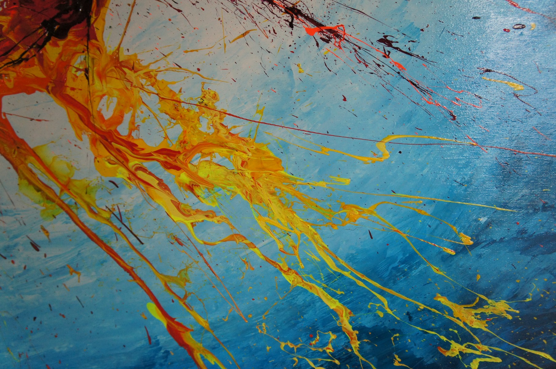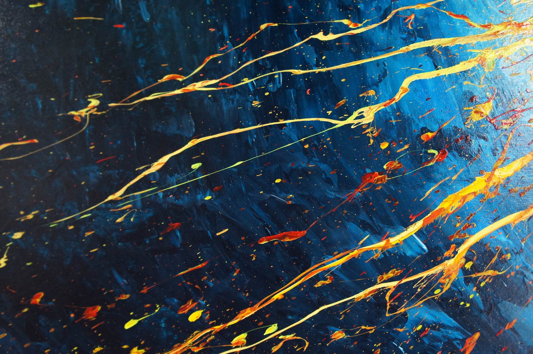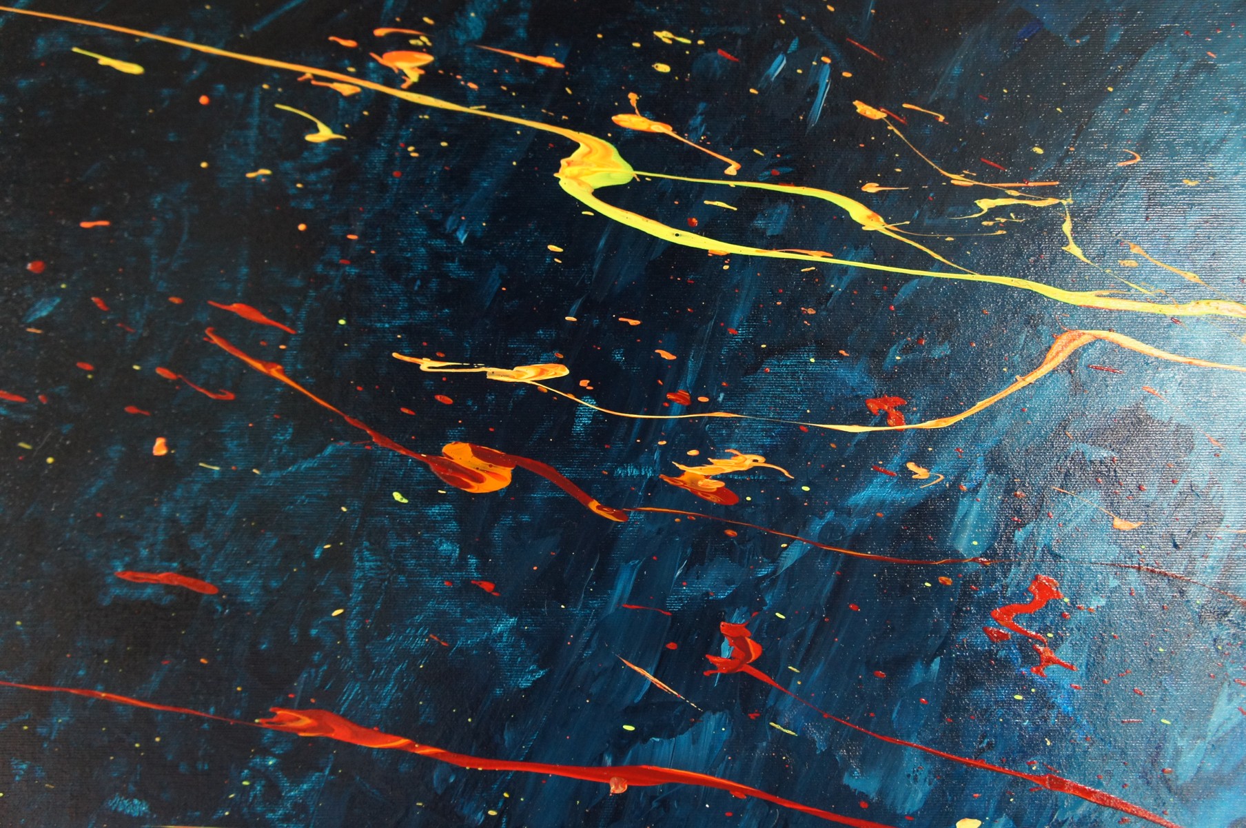 Unique painting using high-quality acrylic colors on gallery quality canvas (appr. 330g/m^2, heavy primed cotton fabric). Glossy varnish to seal and protect the painting. Signed on the front.