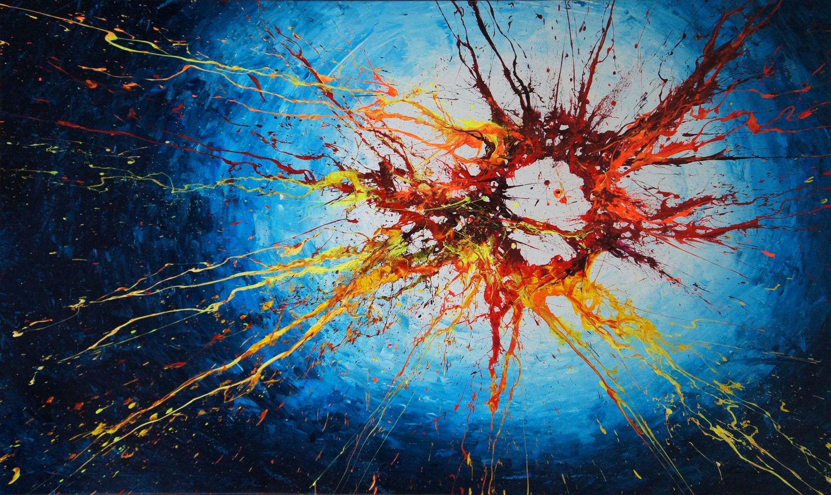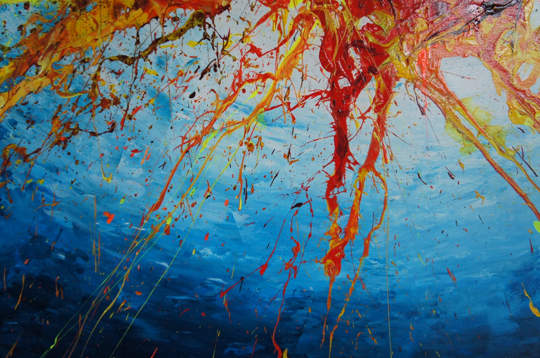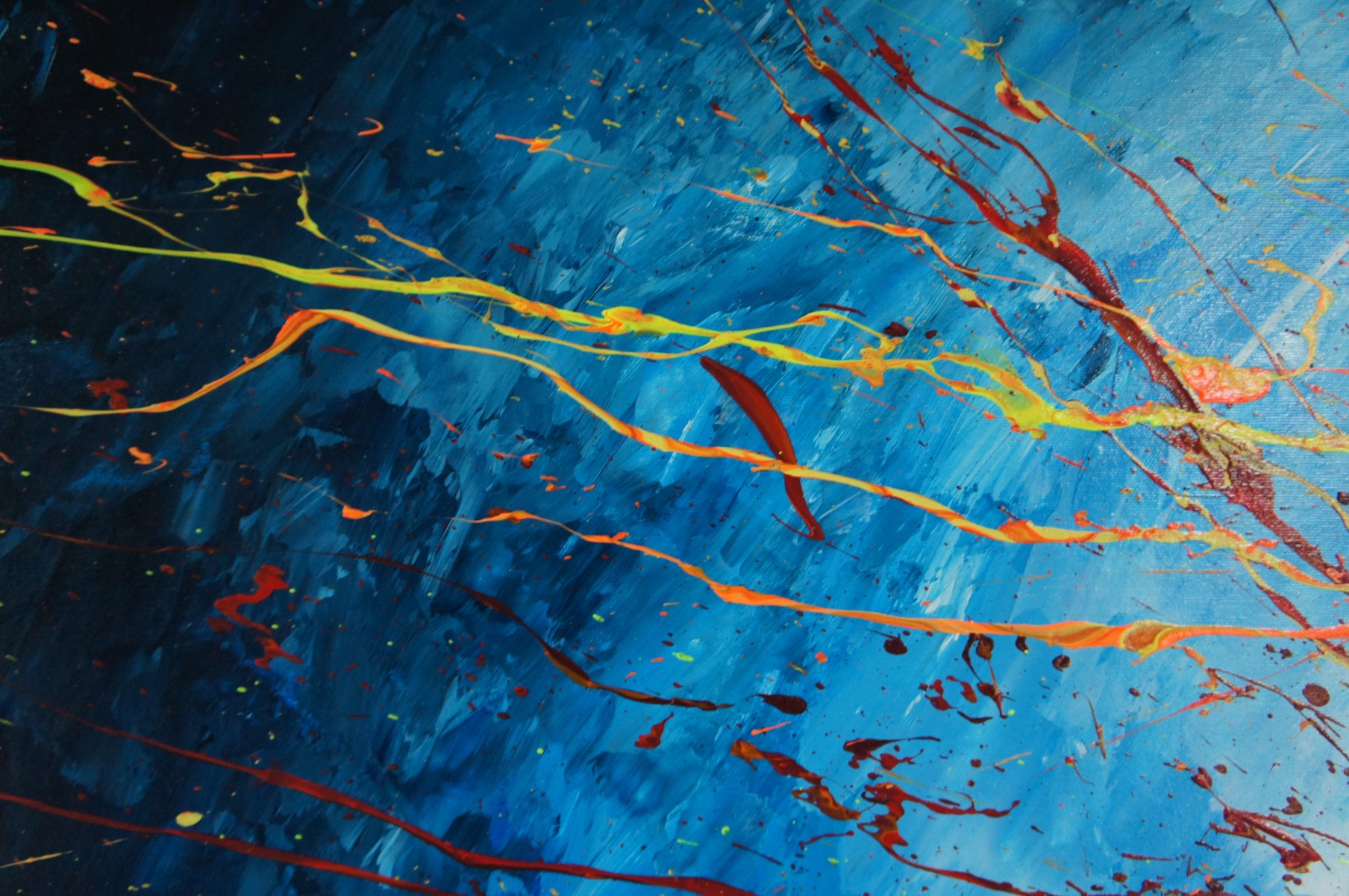 Unique painting using high-quality acrylic colors on gallery quality canvas (appr. 330g/m^2, heavy primed cotton fabric). Glossy varnish to seal and protect the painting. Signed on the front.