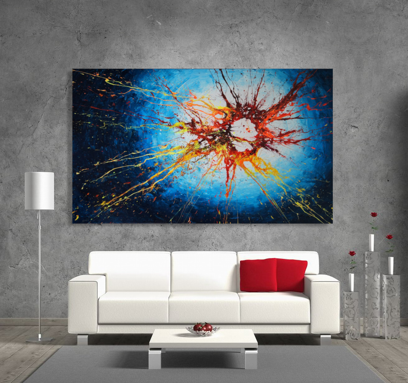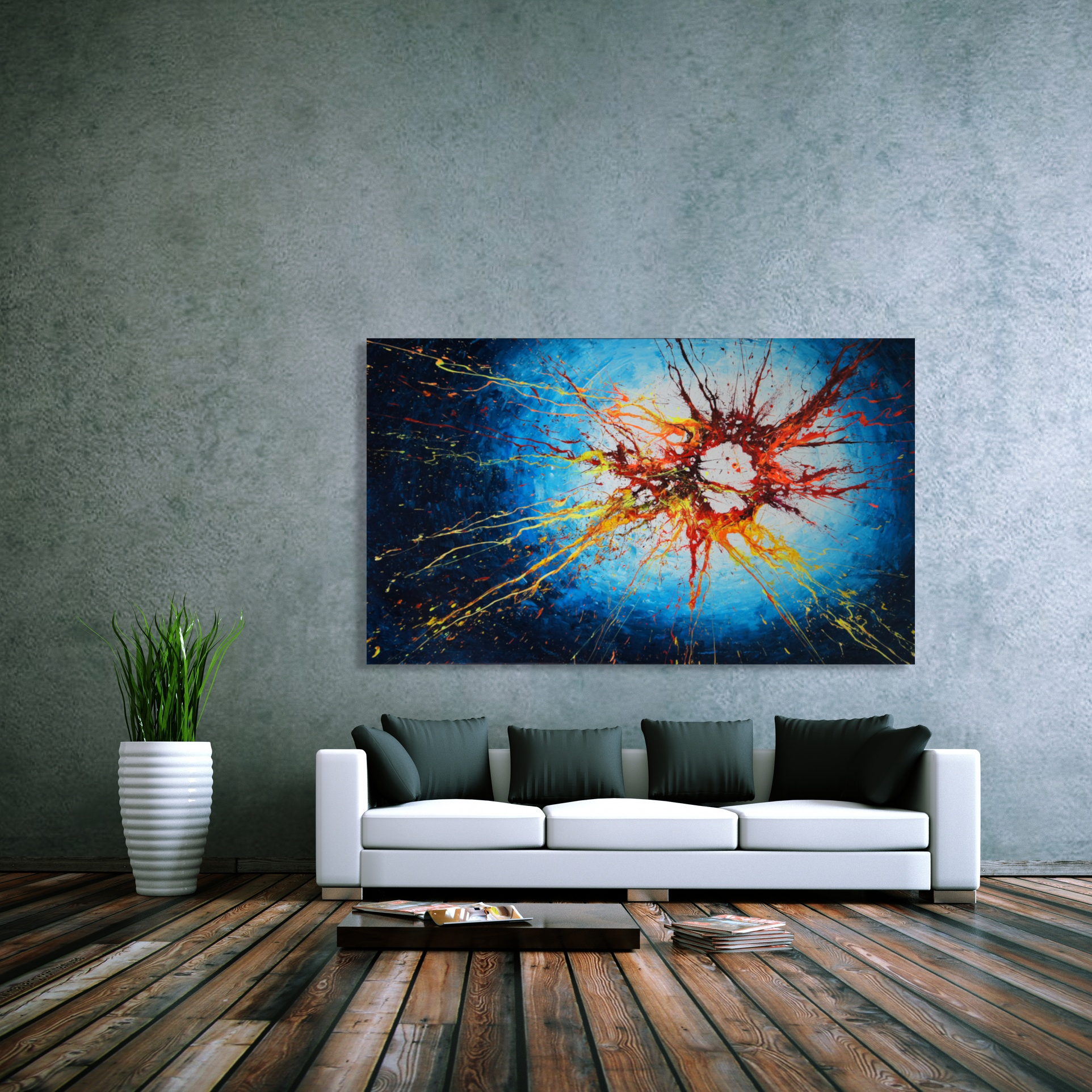 Please note: In-context images are for display purposes and do not necessarily show the artwork to scale. Refer to the dimensions section for the actual size of the painting. If you would like to see how this painting would look at your wall, just send me a photo of the wall/room and I can “photoshop” it onto the wall (approximately to scale of course), at no cost and without any obligation.